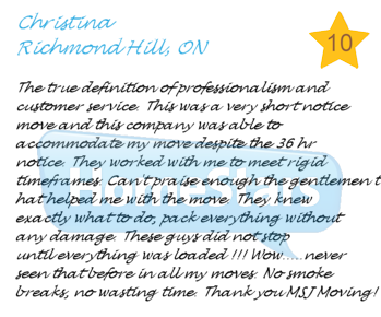 MSJ Moving West wishes to extend its sincerest thanks to all of our customers who send us kind words in email and phone calls.
